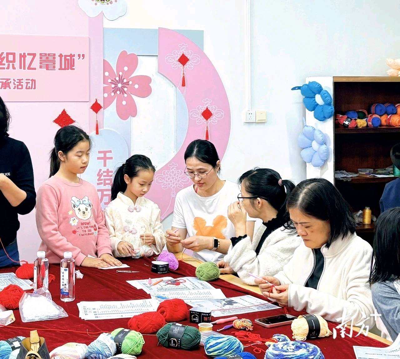 活动通过书画欣赏、手写春联、编织挂件、缝制布包、亲自研学等互动体验,吸引了众多家庭热情参与。在活动中心二楼的书画迎春雅集现场,展出了由市书画函授学院和市女子书画联谊会提供的近40幅书画作品,让孩子们在翰墨书香中潜移默化地感受中华优秀传统文化和良好家风的滋养。三楼的织工坊内,十余组家庭在公益教师指导下共同学习传统编织技艺,协作完成寓意吉祥的小马挂件。一位家长分享道:去年参与了市妇联为困境儿童编织毛衣的活动,让我们全家感受到了手作的温度和公益的力量。这次特意带孩子一起来,希望她能从小体会“指尖传递温暖”的意义,在动手创造美的过程中,学会关爱与分享。